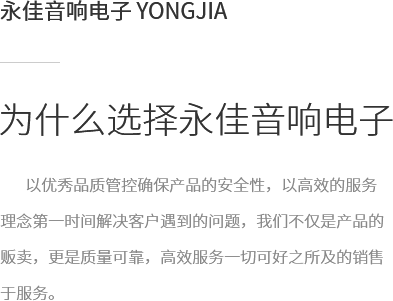 拉薩永佳音響電子有限公司 拉薩永佳音響電子有限公司坐落于美麗富饒的圣城拉薩,公司前身為拉薩昊成音響電子銷售有限公司,注冊資金為300萬元,成立于2010年3月公司地址位于西藏拉薩市貢布塘南側1號薩博廣場4-5、4-8號。拉薩永佳音響電子有限公司主營專業舞臺音響設備、會議音響系統設備、公共廣播音響系統設備、網絡及監控設備、多媒體教學設備、多媒體投影機、幕布、弱電線材、辦公設備、LED液晶顯示屏品種齊全、服務效率、拉薩